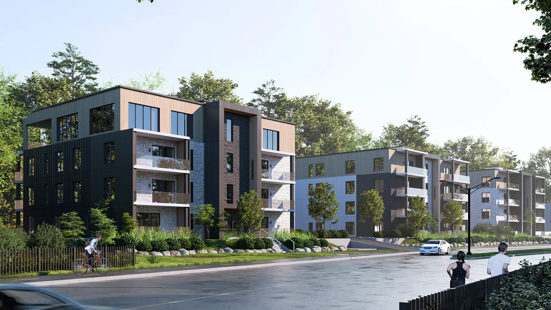 Situés dans un secteur axé sur la nature, à proximité de sentiers pédestres et de pistes cyclables, les immeubles bénéficient également d’un accès rapide aux autoroutes ainsi qu’à tous les services.